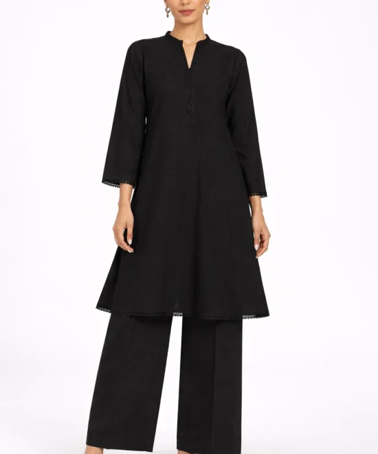 Elegant Black A-Line Long Kurta with Side Pockets