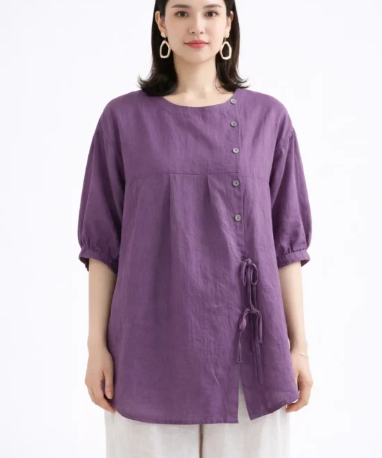 Elegant Plum Purple Asymmetrical Button Top