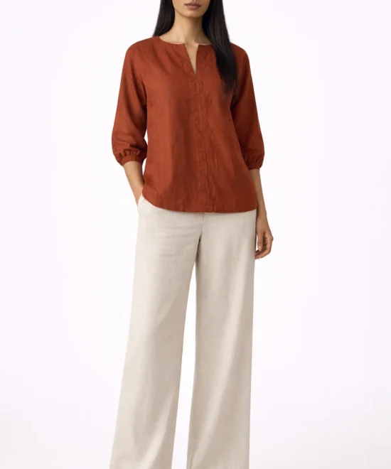 Elegant Rust Notch Neck Top