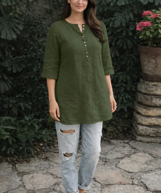 Olive Green Button-Down Linen Tunic