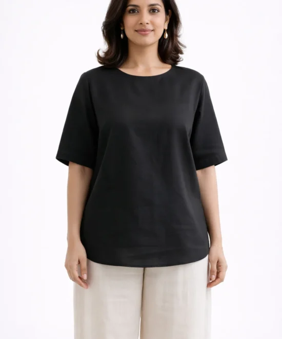Classic Black Minimal Half-Sleeve Top