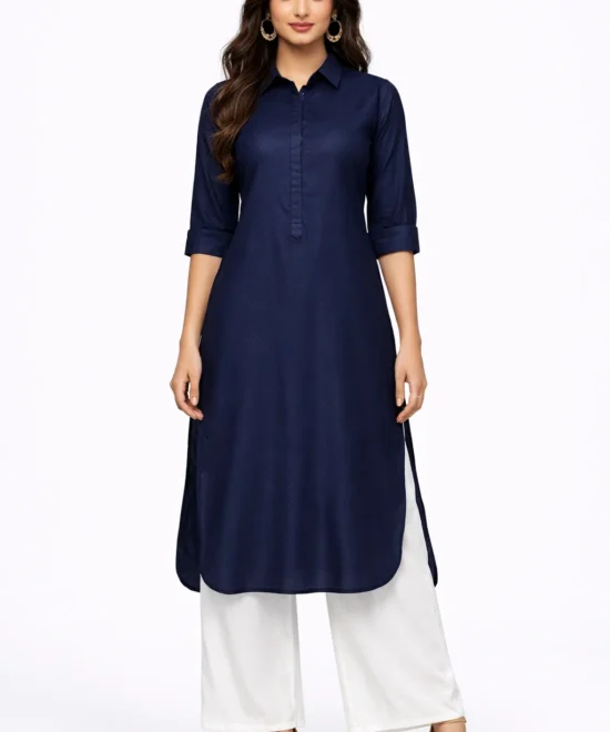 Classic Navy Blue Shirt-Style Kurta