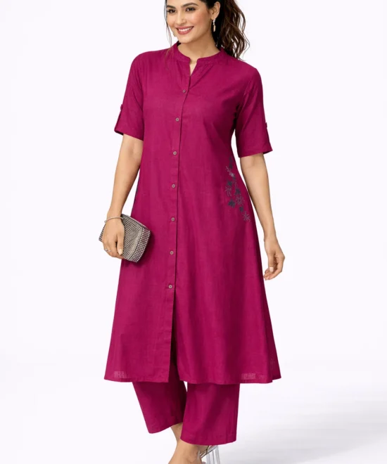 Magenta Embroidered A-Line Kurta